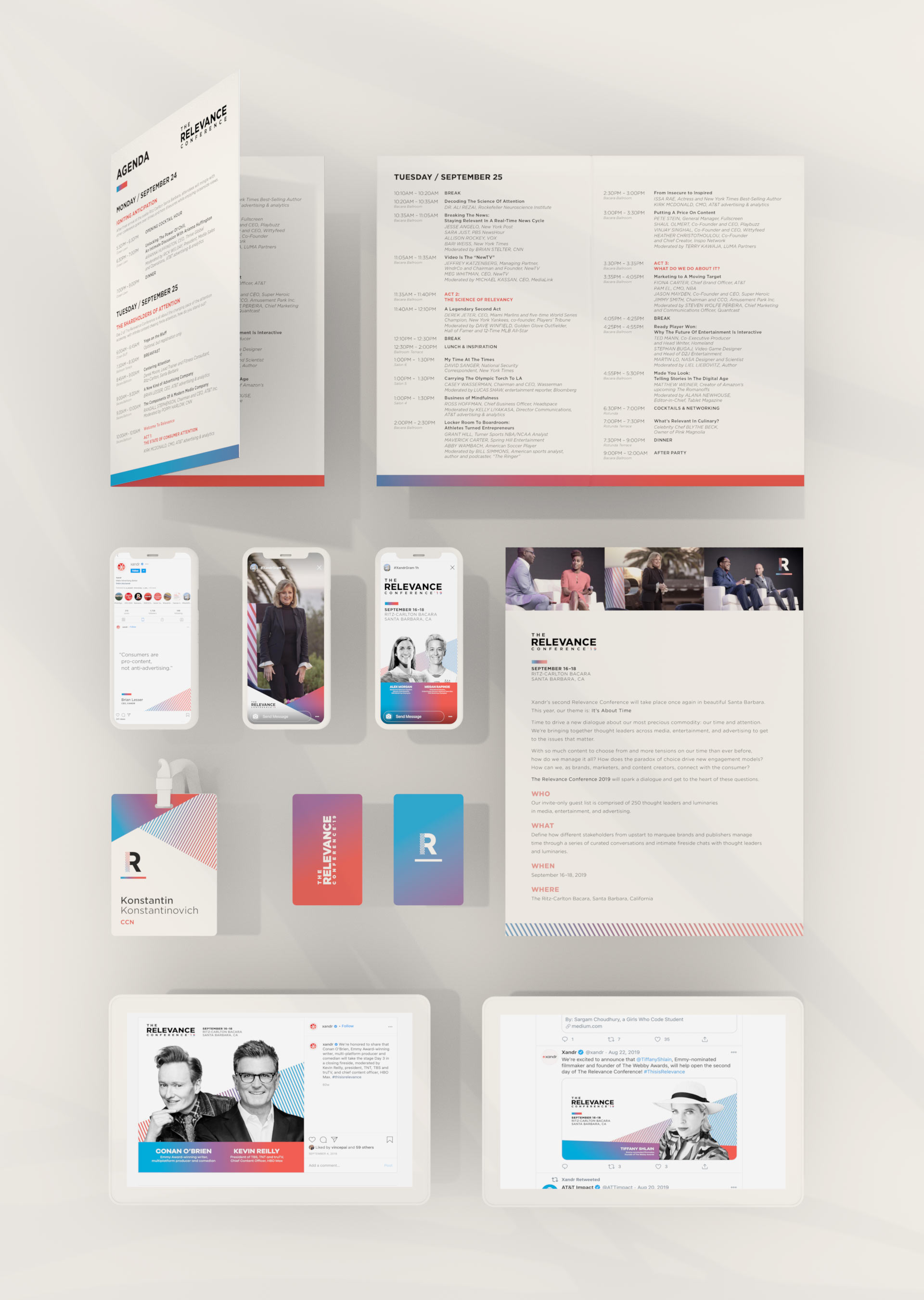 Presentation, onstage graphics, banners, and various collateral pieces for the Relevance Conference'19.